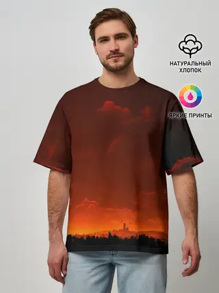Мужская футболка оверсайз / Кровавый закат