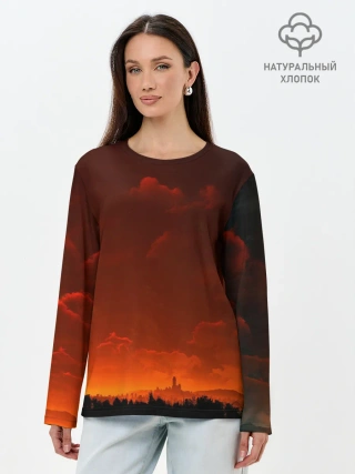 Лонгслив женский. Хлопок / Кровавый закат