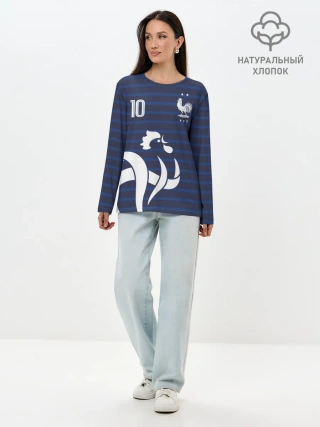 Лонгслив женский. Хлопок / Мбаппе в стиле формы Франции