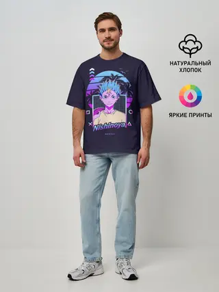 Мужская футболка оверсайз / Юу Нишиноя в стиле киберпанк