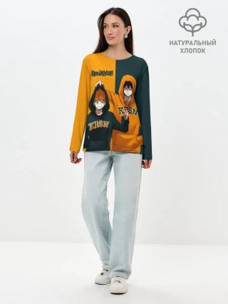 Лонгслив женский. Хлопок / Хината и Кагеяма из Карасуно