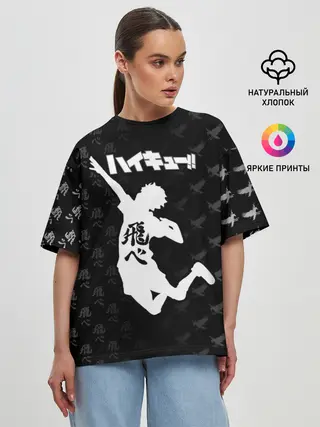 Женская футболка оверсайз / Fly high иероглифами | Haikyuu!!