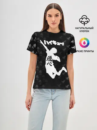 Женская базовая футболка / Fly high иероглифами | Haikyuu!!