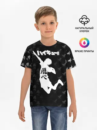 Детская базовая футболка / Fly high иероглифами | Haikyuu!!