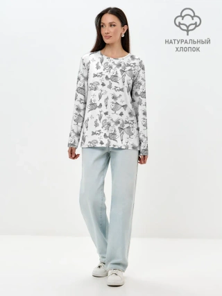 Лонгслив женский. Хлопок / Рисованные сказочные рыбки