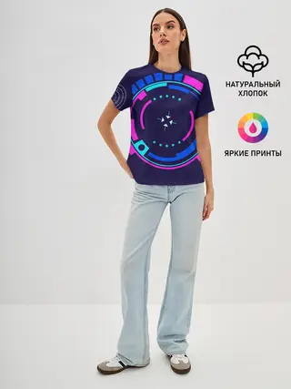 Женская футболка оверсайз / Розовый Синий Киберпанк