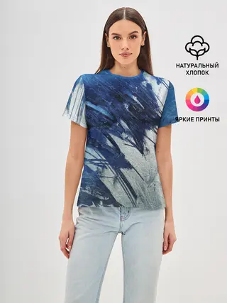 Мужская футболка оверсайз / Серо-синее абстрактное
