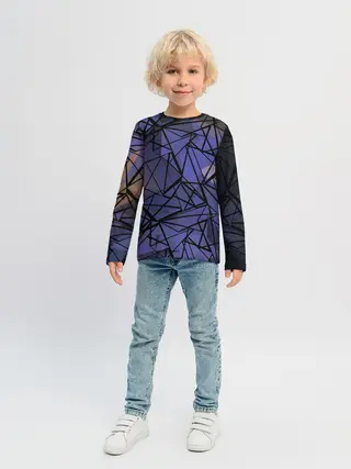 Детский лонгслив / Синий-бежевый абстрактный узор