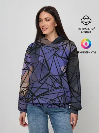 Женская футболка оверсайз / Синий-бежевый абстрактный узор