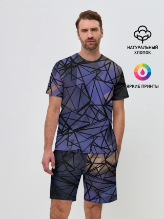 Мужской костюм с шортами / Синий-бежевый абстрактный узор