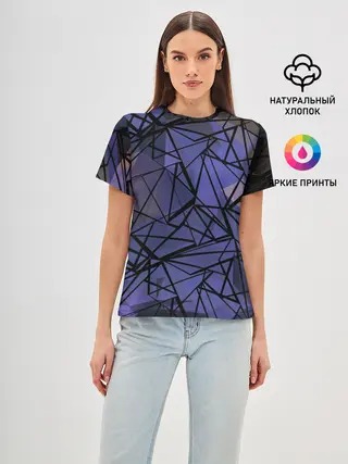 Женская базовая футболка / Синий-бежевый абстрактный узор