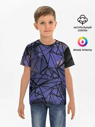 Детская базовая футболка / Синий-бежевый абстрактный узор