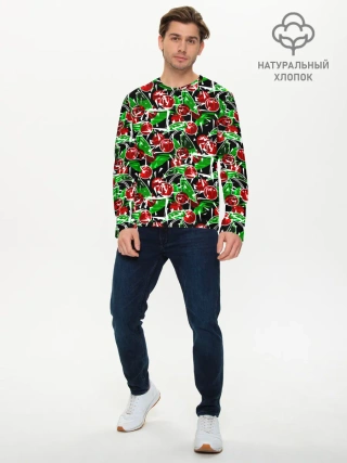 Мужской лонгслив базовый / Абстрактный узор спелая вишня