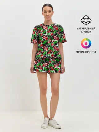 Женская пижама с шортами / Абстрактный узор спелая вишня