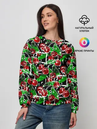 Женская футболка оверсайз / Абстрактный узор спелая вишня