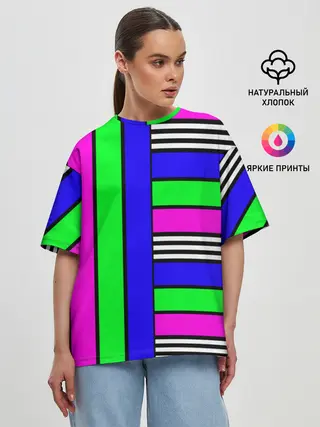 Женская футболка оверсайз / Полосатый яркий летний узор