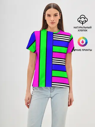 Женская базовая футболка / Полосатый яркий летний узор