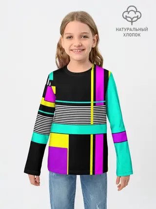 Детский лонгслив / Геометрический неоновый узор
