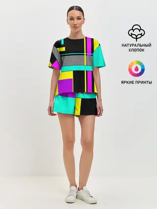 Женская пижама с шортами / Геометрический неоновый узор