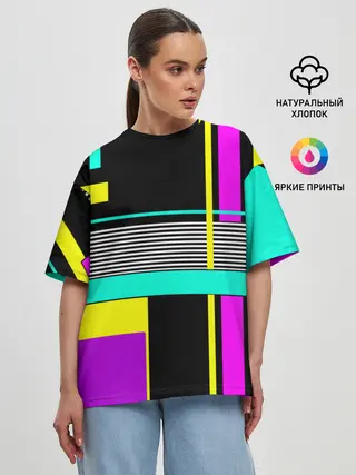 Женская футболка оверсайз / Геометрический неоновый узор