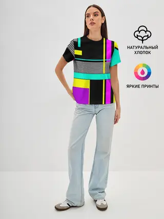 Женская базовая футболка / Геометрический неоновый узор