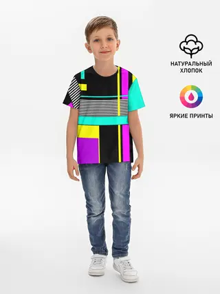 Детская базовая футболка / Геометрический неоновый узор