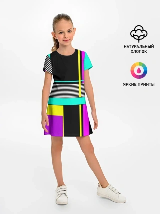 Детское платье / Геометрический неоновый узор
