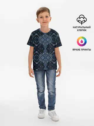 Детская базовая футболка / Темный синий абстрактный узор