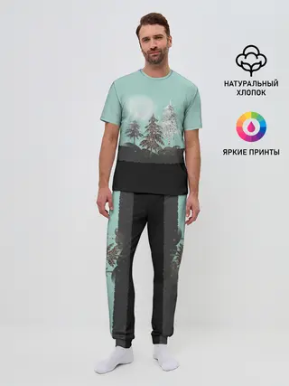 Мужская пижама с брюками / Лес. Мозаичный узор