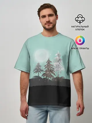 Мужская футболка оверсайз / Лес. Мозаичный узор