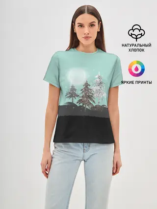Женская базовая футболка / Лес. Мозаичный узор