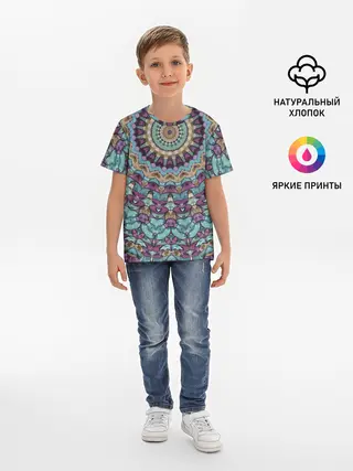 Детская базовая футболка / Сиренево-голубой калейдоскоп .