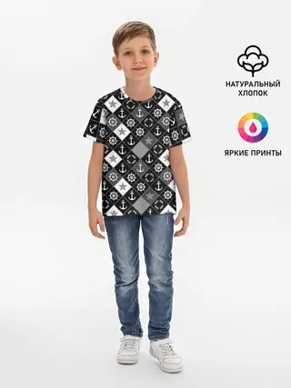 Детская базовая футболка / Черно-белый морской плед