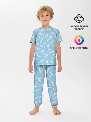 Детская пижама с брюками / Чайки в небе паттерн