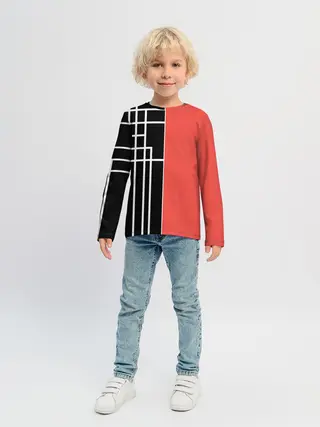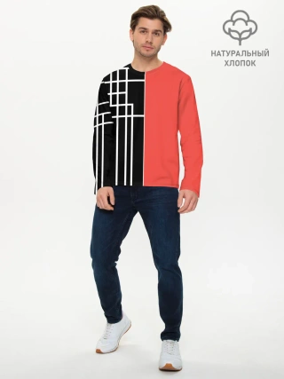 Мужской лонгслив базовый / Черный и коралловый арт деко