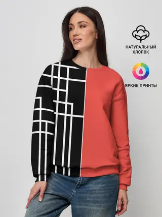 Мужской свитшот базовый / Черный и коралловый арт деко