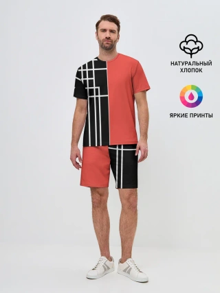 Мужской костюм с шортами / Черный и коралловый арт деко