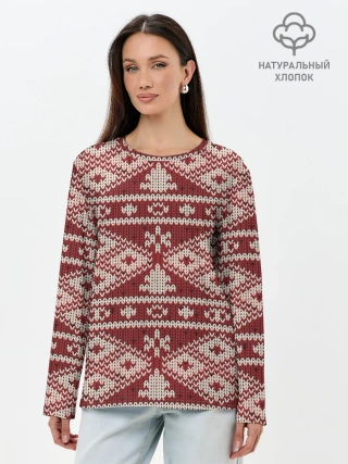 Лонгслив женский. Хлопок / Вязаный рисунок