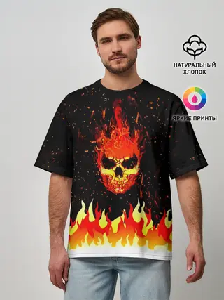 Мужская футболка оверсайз / Пылающий Череп