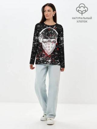 Лонгслив женский. Хлопок / Брызги Череп Хипстер Гранж