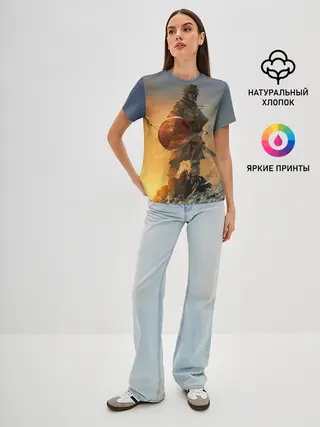 Женская футболка оверсайз / Винланд стоит на скале сага