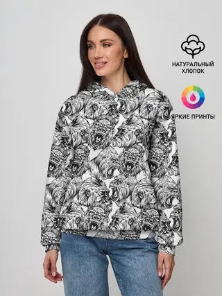 Лонгслив женский. Хлопок / Злые Гориллы - Паттерн
