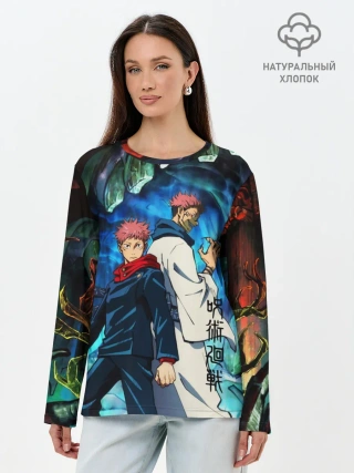 Лонгслив женский. Хлопок / Магическая битва, Итадори и Сукуна