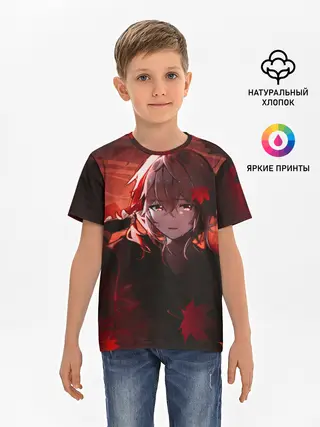 Детская базовая футболка / Кадзуха в кленовых листьях