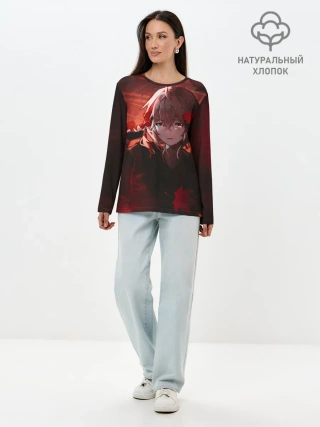 Лонгслив женский. Хлопок / Кадзуха в кленовых листьях