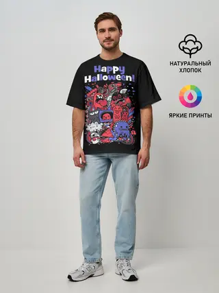 Мужская футболка оверсайз / Монстры на Хеллоуин