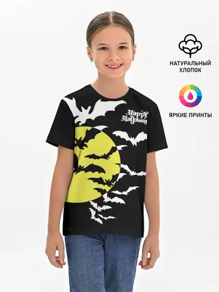 Детская базовая футболка / Летучие мыши на Хэллоуин