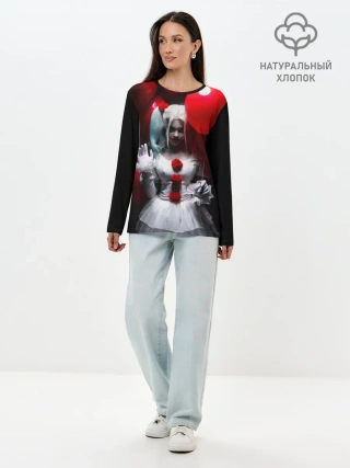 Лонгслив женский. Хлопок / Плохая девочка с красными шарами