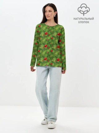 Лонгслив женский. Хлопок / Зелёная Ёлка