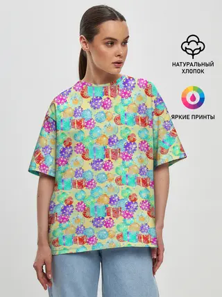 Женская футболка оверсайз / Новогодние Игрушки и Подарки